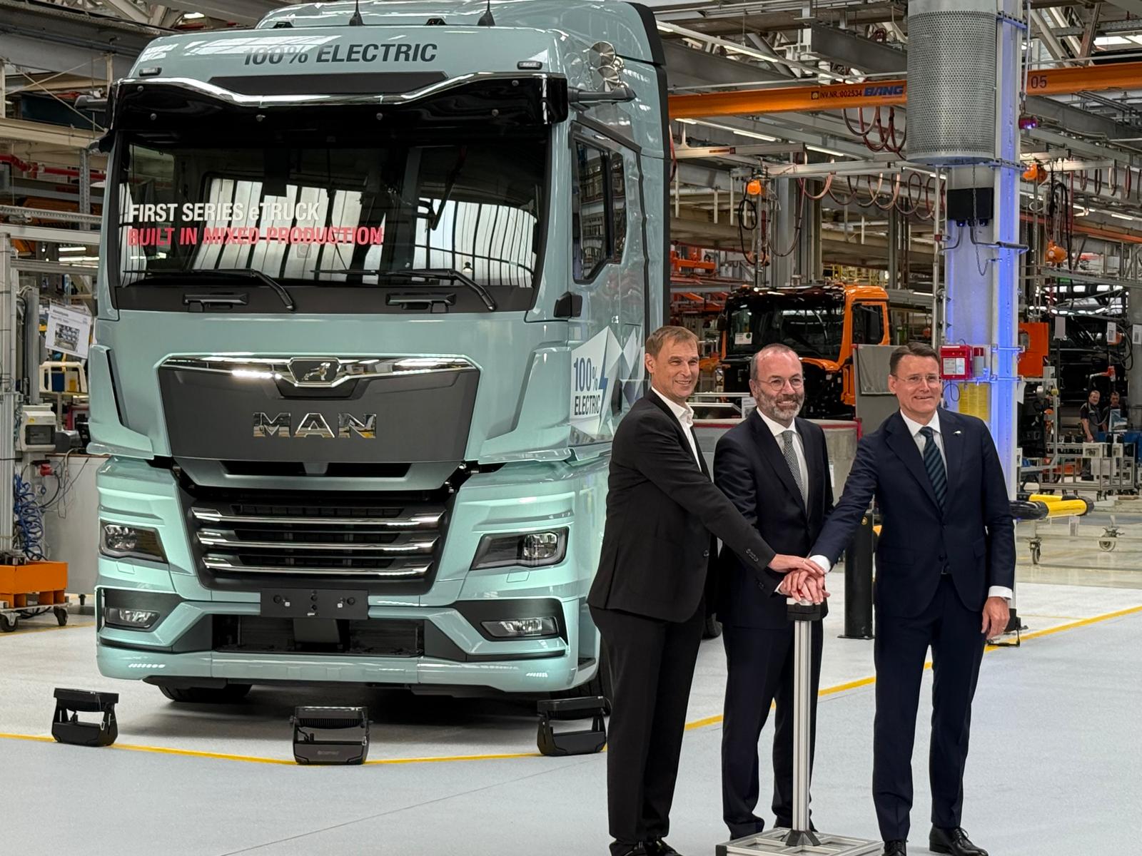 Un moment istoric pentru MAN Truck & Bus: producția de serie a camioanelor electrice MAN a început. Alexander Vlaskamp, CEO al MAN, și Michael Kobriger, membru al Comitetului executiv MAN pentru producție, împreună cu Manfred Weber, membru al Parlamentului European și președinte al PPE, au dat undă verde la fabrica din München. De acum înainte, atât camioanele electrice, cât și cele diesel vor fi produse în cadrul unui proces de producție mixt complet integrat pe aceeași linie.