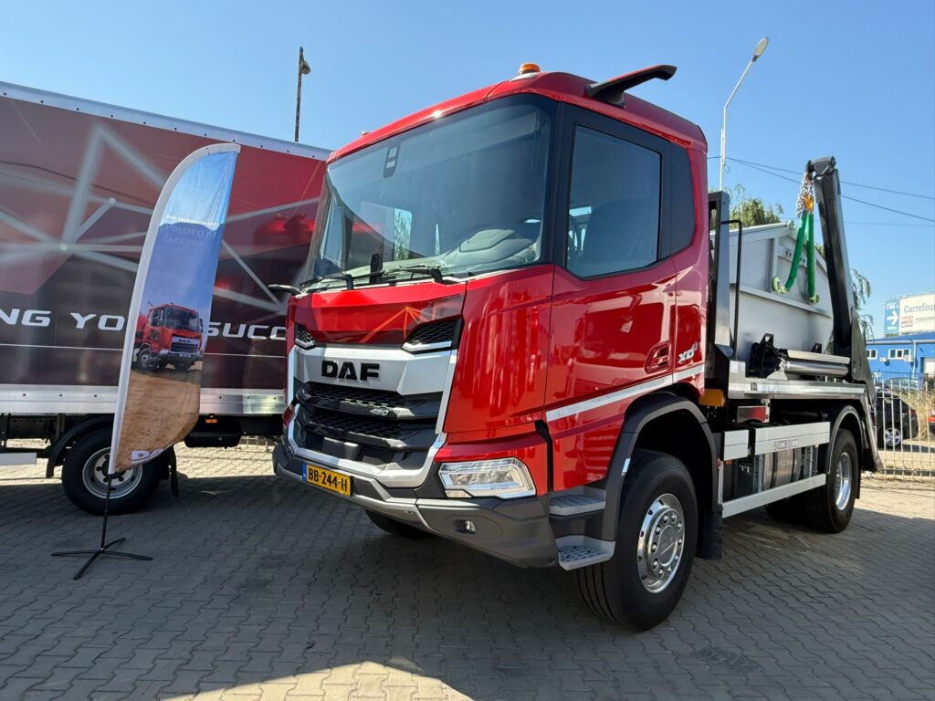 Au fost prezentate toate modelele producătorului olandez reînnoite în 2025, atât camioane pentru transport pe distanţe lungi (care constituie peste 90% din vânzările DAF în România) – modele XF, XG, XG+ – cât şi autoşasiuri XD cu caroserie skip-loader sau autocamioane de distribuţie, precum XB, disponibile inclusiv pentru test drive.