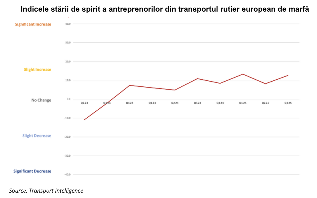 Aceste rezultate, cred autorii barometrului, sugerează că încrederea în creșterea tarifelor s-a consolidat din nou după scăderea din al doilea trimestru al lui 2025, reflectând așteptări mai ferme că cererea de transport rutier va fi mai mare înainte de sezonul sărbătorilor.