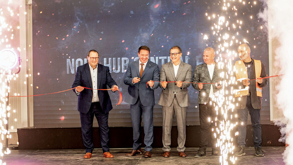 Așa cum am prezentat în interviul cu Danor Ionescu publicat în Logistica de octombrie, în noul hub conceptul „drive through” a fost extins, astfel încât de la un singur drum pe care camioanele intrau și ieșeau din depozit s-a trecut la două drumuri paralele, ce permit descărcarea unui număr triplu de mașini în același timp. Pentru fiecare camion sunt alocate două stivuitoare – câte unul pe fiecare parte, pentru descărcare laterală – iar întregul proces se realizează în doar 16 minute. De acolo, paleții sunt transportați pentru încărcare la vehiculele care așteaptă în afara hub-ului.