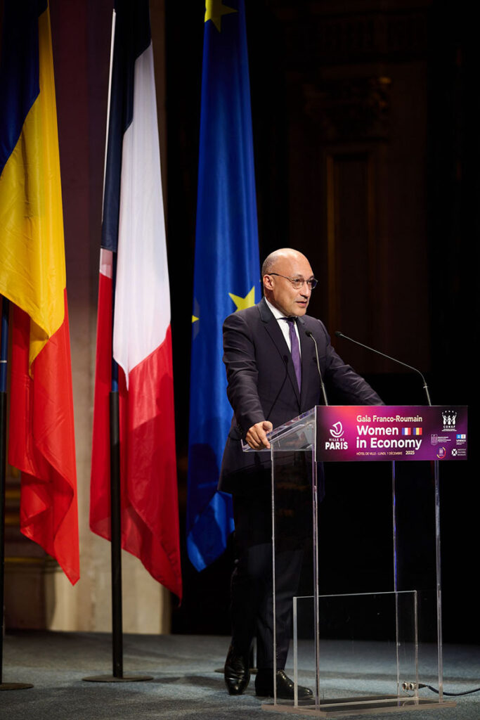 Nicolae ȘTEFĂNUȚĂ, vicepreședinte al Parlamentului European a declarat: „O economie nu poate performa dacă jumătate din potențialul ei este împins în umbră. Experiența mea personală îmi reamintește, în fiecare zi, cât de mult ne bazăm pe femeile din viețile noastre — și cât de puțin recunoaștem acest lucru. La această Gală franco-română Women in Economy celebrăm și schimbarea de paradigmă care este deja în curs. Iar eu voi rămâne, în mod deschis și fără ezitare, aliatul acestei schimbări.”