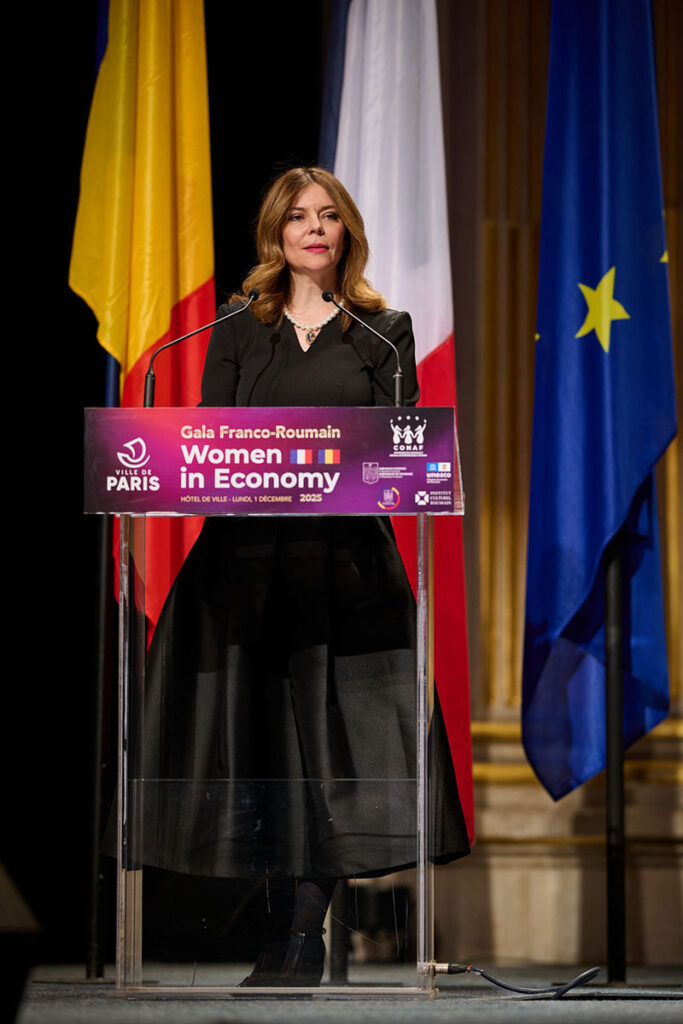 Cristina CHIRIAC, președinta CONAF a declarat: „Am învățat că românii — fie la București, la Paris sau oriunde în lume — poartă în ei o forță care nu renunță. România reprezintă felul în care ne ridicăm unii pe alții, felul în care rămânem conectați dincolo de distanțe, felul în care păstrăm vie lumina din noi. De aceea CONAF este, înainte de orice, o comunitate de antreprenori care refuză să renunțe. Oameni care cred în demnitate, în educație, care știu că schimbarea se naște întâi în interior și abia apoi în economie. Dacă România are astăzi o voce credibilă în Europa, este și pentru că ne-am asumat responsabilitatea de a ține treaz sufletul acestui popor. Faptul că am lansat două premiere — o gală franco-română organizată în inima Parisului de Ziua Națională a României și lansarea celui de-al treilea număr al revistei Women in Economy — este mărturia că România poate urca în lumina reflectoarelor fără a-și renegocia identitatea. Îi mulțumesc, cu recunoștință, Excelenței Sale Ioana Bivolaru, pentru sprijinul constant și pentru felul în care a înțeles că diplomația este uneori puntea cea mai solidă dintre două națiuni. Îi mulțumesc doamnei Anne Hidalgo – primarul Parisului pentru deschiderea cu care ne-a sprijinit și pentru înțelegerea faptului că legăturile dintre comunitățile noastre sunt diplomatice, profund umane și culturale. Le mulțumesc domnului Nicolae Ștefănuță – vicepreședinte al Parlamentului European, și doamnei Oana Zaharia – manager interimar al Institutului Național al Patrimoniului pentru mesajele de susținere. Le mulțumesc membrilor Consiliului Director al CONAF și Ruxandrei Șerban – președinta CONAF Franța, care au fost alături de mine în această construcție care depășește granițele unei simple gale — o construcție de sens, continuitate și viziune.”