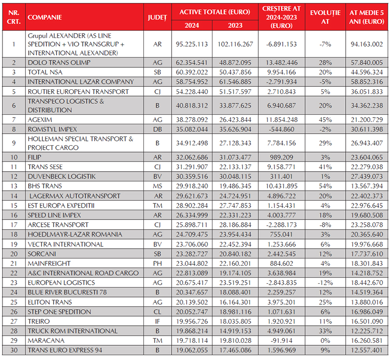 Activele totale ale transportatorilor din România care au avut în 2024 cele mai mari 500 de valori ale activelor se ridică la 3,24 de miliarde de euro, față de 3,03 în 2023, în timp ce primii 100 au 1,84 de miliarde de euro, față de 1,67, iar primii 30, 991,81 de milioane de euro, față […]