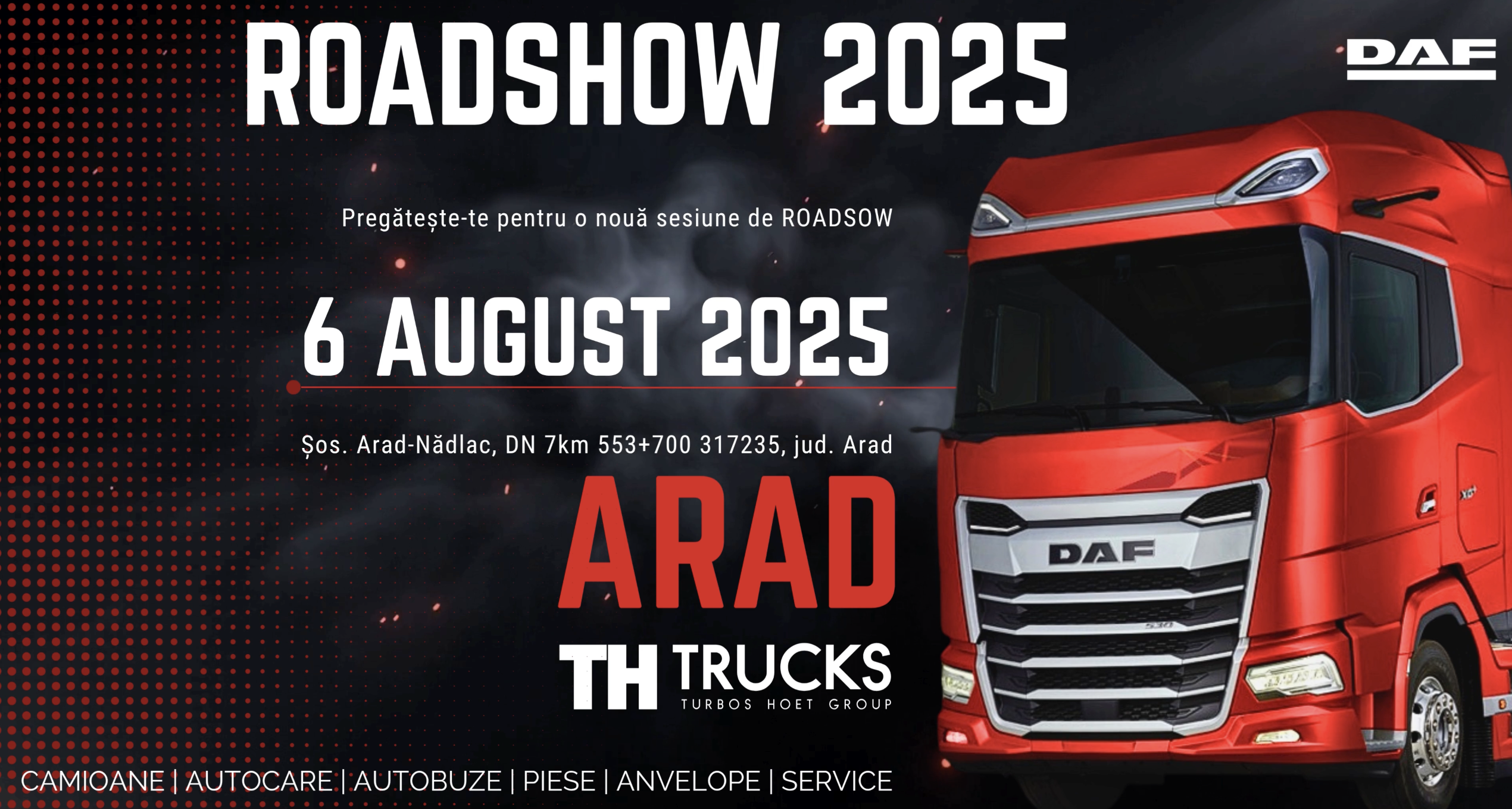 Seria de evenimente debutează la Arad, în data de 6 august, urmând să ajungă apoi în Brașov (13 august), București – Chiajna (21 august) și Cluj – Gilău (28 august). Fiecare etapă a roadshow-ului este concepută ca un eveniment interactiv, în care transportatorii, managerii de flotă și șoferii profesioniști vor putea testa camioanele DAF în condiții reale de trafic și vor avea acces la expertiză personalizată oferită de specialiștii TH Trucks.