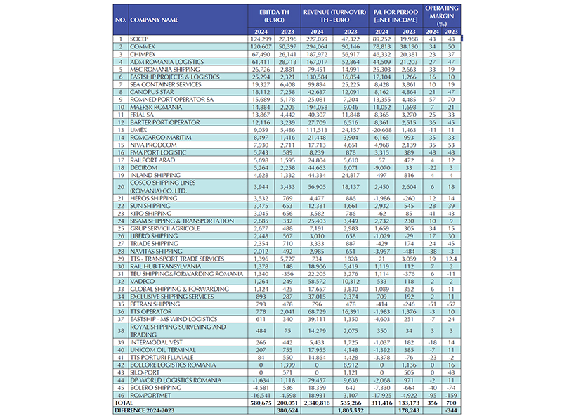An analysis of 46 companies active in port operations, shipping and logistics services (CAEN 5224, 5210 and 5229) shows that 2024 was a good financial year for the Constanța ecosystem. The companies generated a combined turnover of approximately €2.34 billion, alongside EBITDA of €580.7 million and net profit of €311.4 million. The figures for 2025 […]