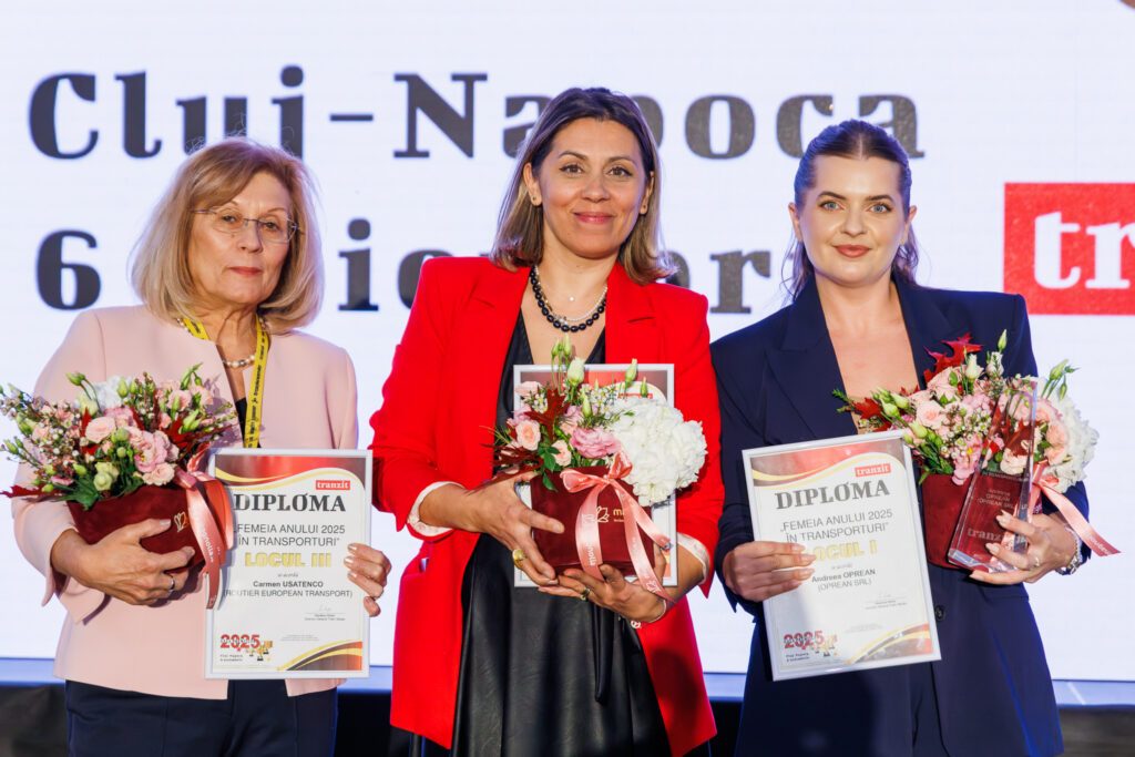 În urma voturilor exprimate de un juriu alcătuit din Adriana Pălăşan (ARILOG), Cristina Chiriac (CONAF), Cristina Radu (KLG Europe Logistics), câştigătoarea de anul trecut a primei ediţii a competiţiei, Iancu Guda, Marius Ghenea, Danor Ionescu (Pall-Ex), Sandor Gabor (IFPTR) şi Marilena Matei (Tranzit), cât şi a voturilor venite din partea cititorilor, exprimate pe www.traficmedia.ro, Andreea Oprean a fost desemnată câştigătoarea trofeului Femeia Anului în Transporturi 2025.