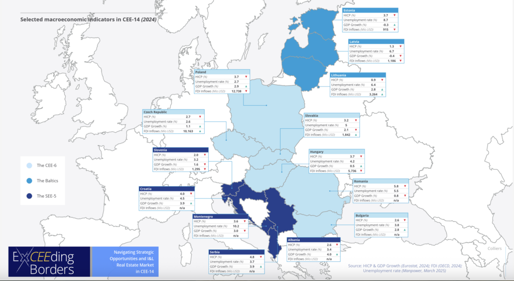 În ciuda unui climat economic global marcat de incertitudini și tensiuni geopolitice, piețele industriale și logistice din Europa Centrală și de Est (CEE) traversează o perioadă de transformare profundă. Potrivit raportului „ExCEEding Borders 2025”, realizat de Colliers, regiunea devine tot mai atractivă pentru investitorii strategici, dezvoltatorii imobiliari și marile lanțuri de aprovizionare care caută stabilitate, eficiență și proximitate față de piețele occidentale.
