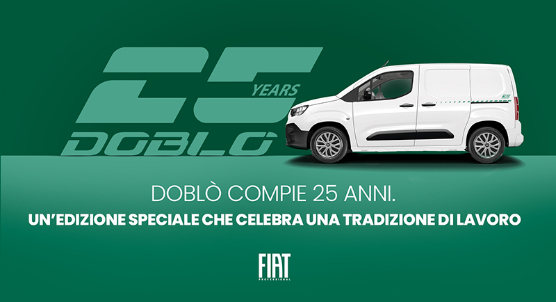 Pentru a comemora această tradiție și a sărbători cea de-a 25-a aniversare a modelului Doblò, compania a pregătit un model aniversar în ediție specială. Cu un exterior reînnoit și caracter nou, noul model aduce o finisare elegantă în culoarea verde și un scut de protecție atractiv pe bara de protecție față, care iese în evidență oriunde ar circula. Disponibil atât în variantă diesel, cât și electrică, ediția specială combină soluții inteligente de depozitare, precum și conectivitate și tehnologie avansate într-un pachet conceput pentru a răspunde diverselor nevoi de afaceri.