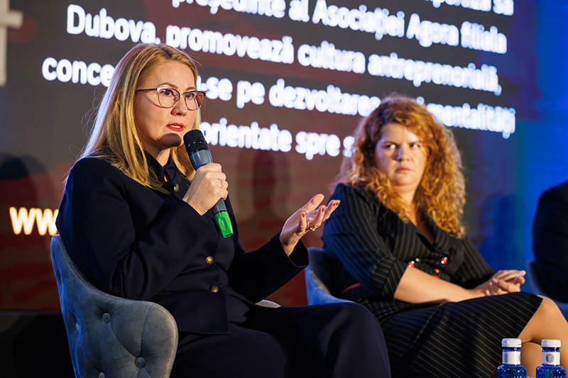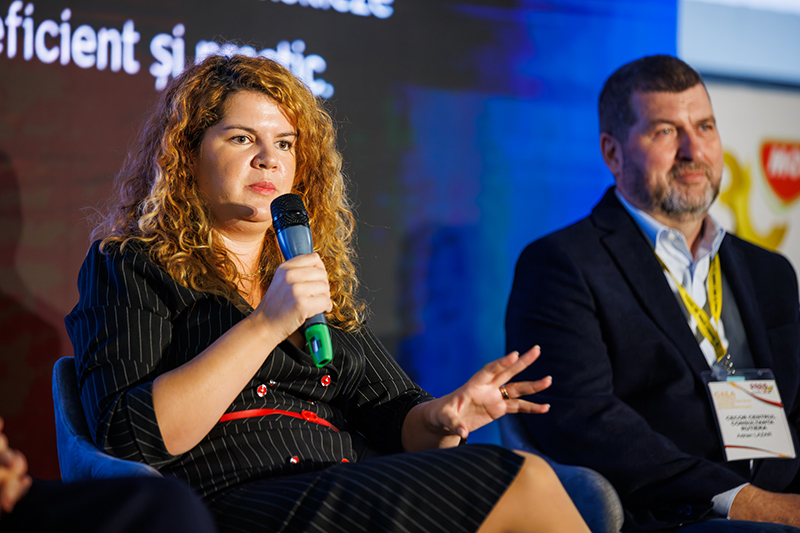 În panel: Consultant Roxana Ilie, Cristina Chiriac (președinte CONAF), Beniamin Lucescu (președinte FORT), Augustin Hagiu (deputat PSD), Iuliana Badea (USER), Bogdan Frigioiu (Fortify); Moderator: Marilena Matei