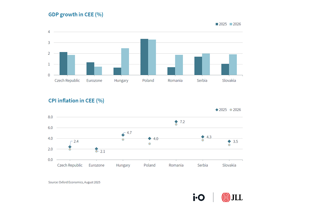 Economiile din CEE dau dovadă de rezistență în 2025, creșterea PIB-ului variind de la 0,7% în Ungaria și România la 3,4% în Polonia, potrivit unui raport transmis de iO Partners și JLL. Consumul intern rămâne principalul motor, susținut de creșterea salariilor și de investițiile finanțate de UE.