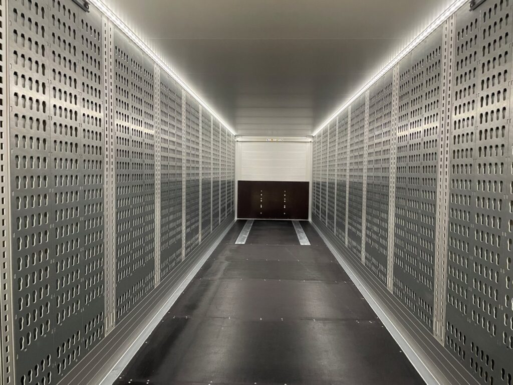 Pereții laterali au construcție robustă din oțel în două straturi, cu stâlpi ranforsați, dintre care unul susține șinele pentru a doua podea, iar al doilea este utilizat pentru montarea plăcilor galvanizate cu orificii în formă de cheie și creează puncte suplimentare de fixare. Galvanizarea crește rezistența la coroziune comparativ cu componentele vopsite și reduce uzura și necesitatea reparațiilor pe termen lung, iar orificiile sub formă de cheie sunt ranforsate cu o curbură pronunțată pentru a asigura o rezistență mare la sarcină chiar și în condiții de utilizare intensă.