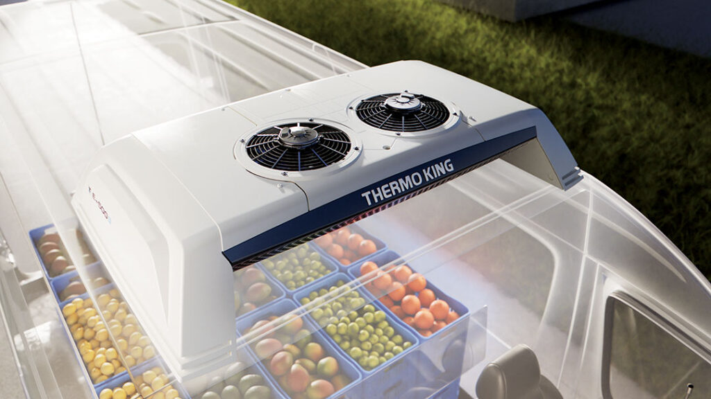 Thermo King s-a mai înscris în competiție cu noua serie E de agregate frigorifice cu emisii zero (E-400e, E-500e și E-600e), proiectate special pentru vehicule electrice cu baterii (BEV) între 3,5 și 7,5 t. Acestea sunt alimentate de bateria mașinii și sunt disponibile atât pentru transport la o singură temperatură, cât și multi-temp, în moduri de răcire și de încălzire, pentru a se adapta unor cerințe diverse ale clienților. Agregatele au fost concepute pentru a oferi performanțe foarte bune în ceea ce privește controlul temperaturii și pentru un consum mic de energie al bateriei, astfel încât să fie maximizată autonomia vehiculului. Ele au o tehnologie patentată și personalizată de invertor și un compresor de refrigerare ermetic ultra-eficient și puternic cu viteză variabilă, pentru performanțe bune cu un consum redus de energie. Iar interacțiunea cu sistemul de baterii OEM al vehiculului este inteligentă.