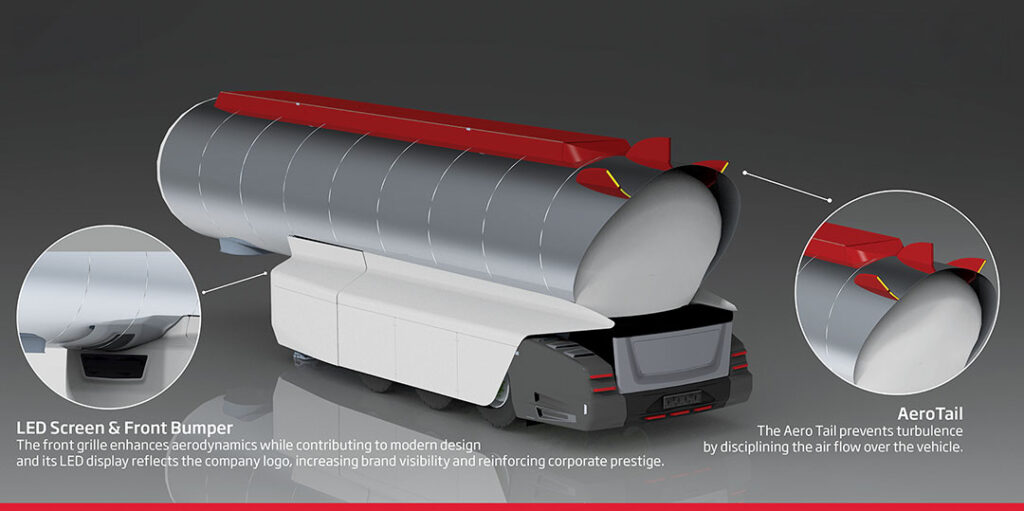 OKT Trailer a concurat cu o cisternă cu design inovator care combină componente de înaltă tehnologie ce sporesc eficiența aerodinamică și reduc impactul asupra mediului. Tava de scurgere aerodinamică permite reducerea consumului de combustibil și conferă un aspect plăcut datorită structurii sale ce diminuează frecarea cu aerul. Controlat de un sistem pneumatic, capacul tăvii de scurgere oferă și siguranță și este ușor și rezistent deoarece folosește materiale compozite.
