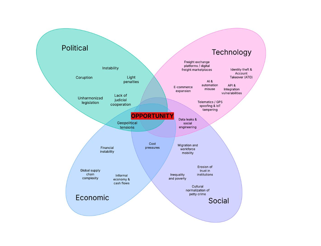 În acest context, se anticipează că în 2026 incidentele de securitate – izolate sau organizate – vor continua să crească, influențate de o serie de factori P.E.S.T. (Politici, Economici, Sociali și Tehnologici) care aduc atât riscuri, cât și oportunități.