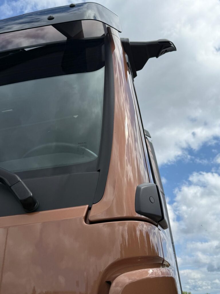 La obţinerea unui consum extrem de economic au contribuit şi cele câteva „sigilări” ale caroseriei din faţă, prelungirea uşilor din faţă cât să fie acoperită şi ultima treaptă sau alungirea terminaţiilor din cauciuc care completează paravânturile laterale sau deflectoarele de pe părţile laterale ale cabinei şi de sus. Parasolarul a fost optimizat din punct de vedere aerodinamic aproape la nivelul unui camion fără parasolar.