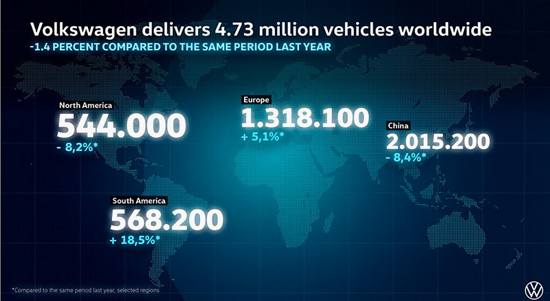 Volkswagen a înregistrat o creștere spectaculoasă a vânzărilor de modele electrice în Europa, în special în Germania. Pe piața internă au fost livrate 93.800 de vehicule electrice, o creștere semnificativă de 60,7%, iar la nivel european livrările au ajuns la aproape 247.900 de unități (+49,1%).